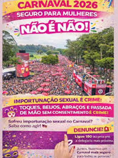 Com o objetivo de conscientizar a população e combater o assédio durante o Carnaval de Salvador, a campanha “Não me pegue, não me toque” é uma ação preventiva voltada à promoção do respeito, do consentimento e da segurança dos foliões.