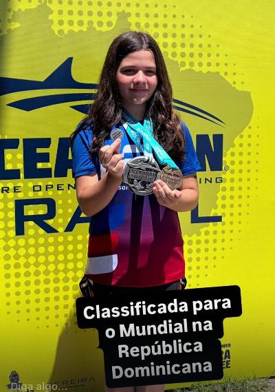 A atleta de 13 anos representou Jequié na etapa mundial do Oceaman realizada em Salvador no dia 04 de abril, prova classificatória para o Mundial que acontecerá em Bayahibe, na República Dominicana, entre os dias 9 e 15 de novembro.
