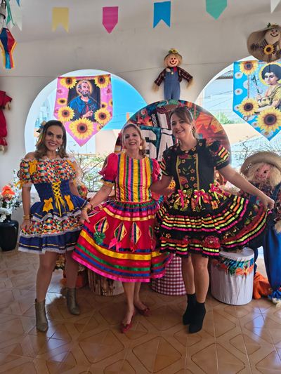 O ambiente decorado com bandeirolas, toalhas xadrez e balões coloridos, trajes típicos com direito a vestido de chita e chapéu de palha. Mais do que uma comemoração, foi um momento de reencontro com as raízes culturais e com a alegria simples de estar entre os que se ama.