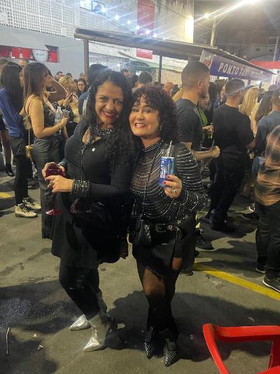 a aniversariante recebendo o abraço carinhoso da querida amiga Isis Brasil