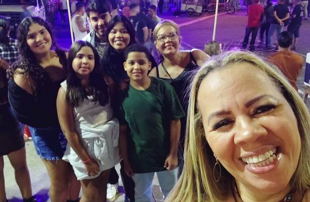 No destaque, a aniversariante de sorriso largo Ariadia Barbosa com a irmão advogada Ariane Barbosa e sobrinhos em comemoração a data